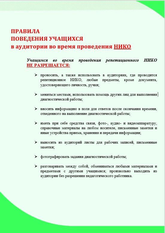 Правила поведения учащихся в аудитории во время проведения НИКО