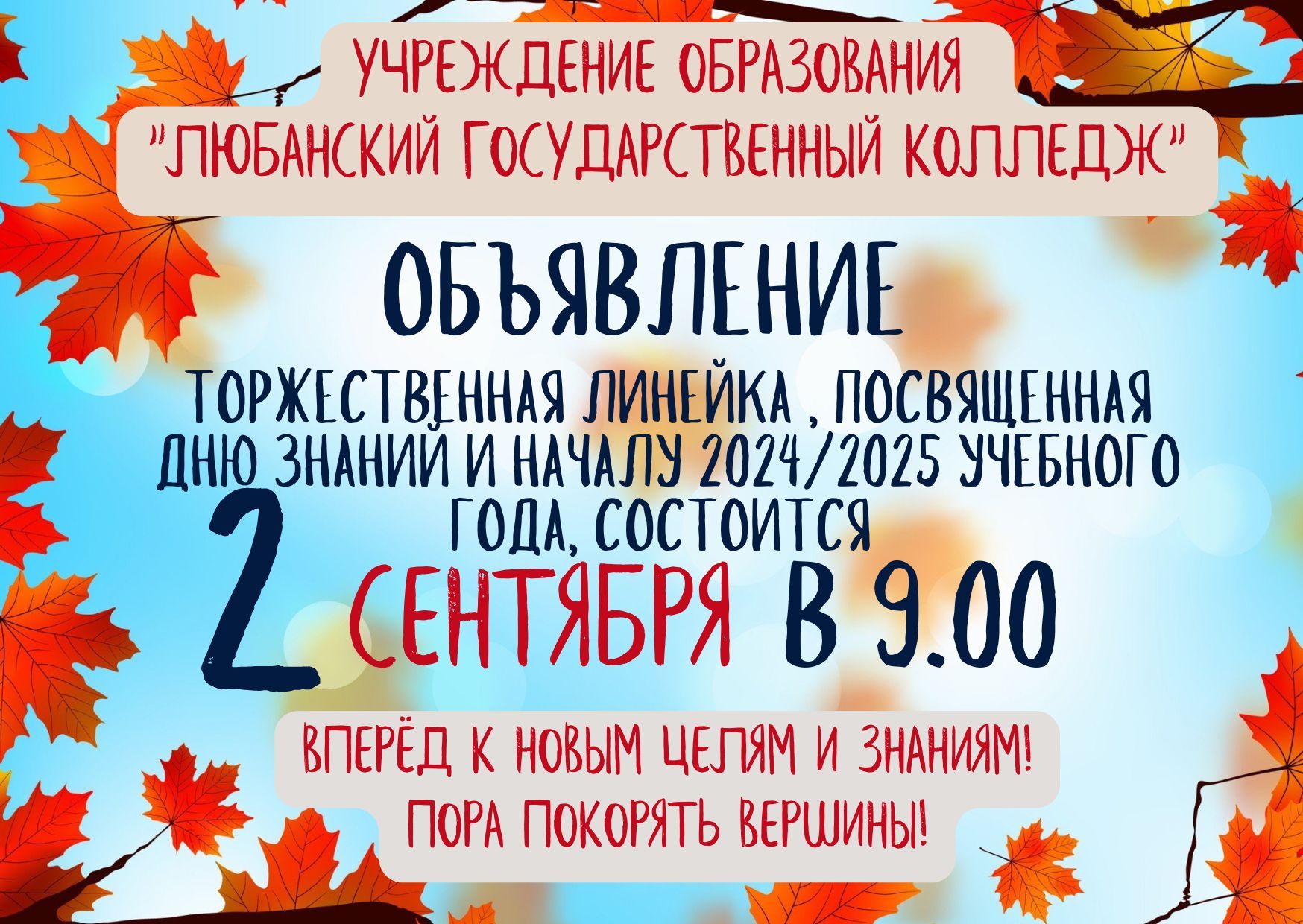 Торжественная линейка, посвященная Дню знаний и началу 2024/2025 учебного года, состоится 2 сентября в 9.00