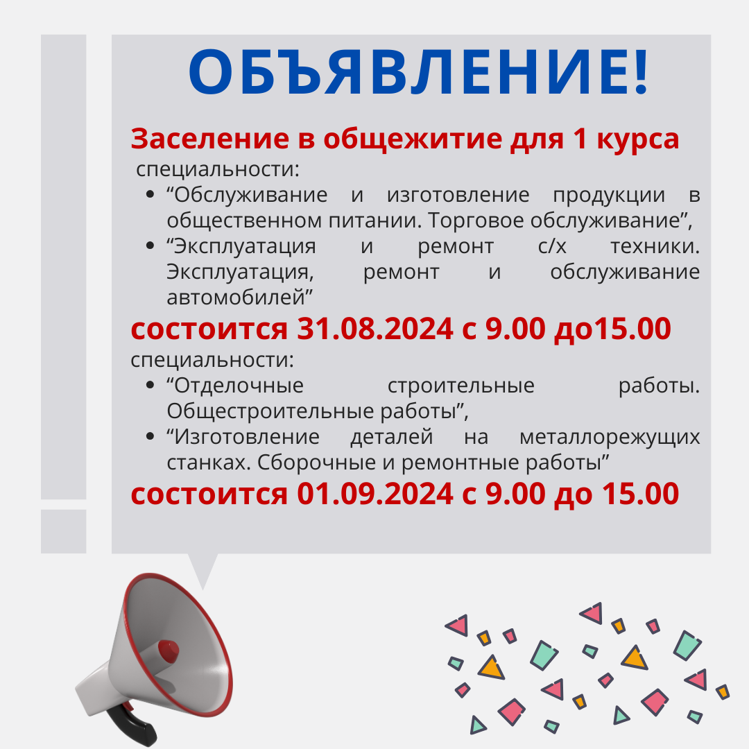 Заселение в общежитие для 1 курса