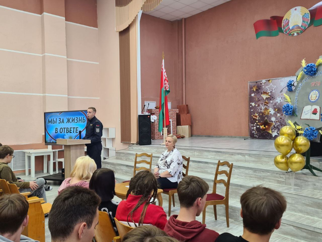 07.10.20257 октября 2025 года в Любанском государственном колледже в рамках профилактической работы по предотвращению дорожно-транспортных происшествий с участием несовершеннолетних прошёл тематический час безопасности под названием «Мы за жизнь в ответе»,